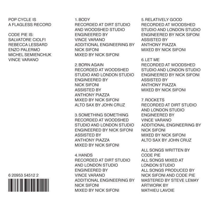 It’s highly embarrassing to admit one’s ignorance about a band as brilliantly good as Montreal’s Code Pie a decade or so into their existence. More so when one has spent the better part of the past ten years doing nothing but discovering and documenting brilliantly good Canadian musicians. Blame the delayed introduction on the fact there’s been five years between Pop Cycle, the quintet’s latest, and their last long player, 2011’s Love Meets Rage. Still, there’s no excuse for completely missing the strings of singles released in the interim (all of which appear on Pop Cycle). It’s a sin, I tell you. The road to redemption starts now; my penance is full-bodied immersion into Pop Cycle and Code Pie’s complete back catalogue.